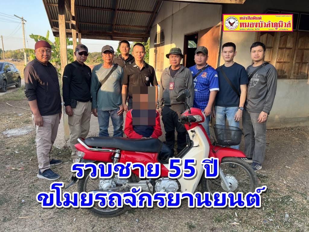 ตำรวจชุดสืบสวนศรีบุญเรืองรวบชาย 55 ปีขโมยรถจักรยานยนต์กลางวันแสกๆ