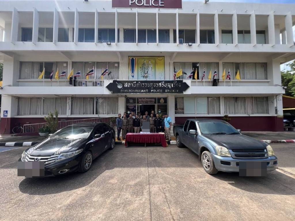 พ.ต.ท.สุทัศน์ ไพบูลย์ รอง ผกก.สส.สภ.ศรีบุญเรือง ,พ.ต.ท.ชัยญา เขื่อนแก้ว สว.สส.สภ.ศรีบุญเรือง พร้อมชุดสืบสวน ร่วมกันจับกุมตัว นายสมชาย (นามสมมุติ) อายุ 29 ปี ตำบลหนองแก อำเภอศรีบุญเรือง จังหวัดหนองบัวลำภู ของกลางยาบ้า 40,318 เม็ด ,ตรวจยึดรถยนต์ 2 คัน เป็นรถยนต์เก๋งฮอนด้าสีดำ และรถกระบะอีซูซุแคปสีฟ้า มูลค่า 1,500,000 บาท ,โทรศัพท์มือถือ จำนวน 2 เครื่อง ,สมุดจดบัญชีรายรับรายจ่ายจำนวน 1 เล่ม