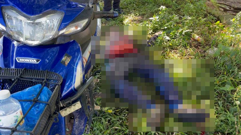 มีรอยเลือดหยดเป็นทาง อยู่ที่เบาะรถมอเตอร์ไซด์ฮ้อนด้าเวฟ สีน้ำเงิน เสียชีวิตมาแล้วไม่ต่ำกว่า