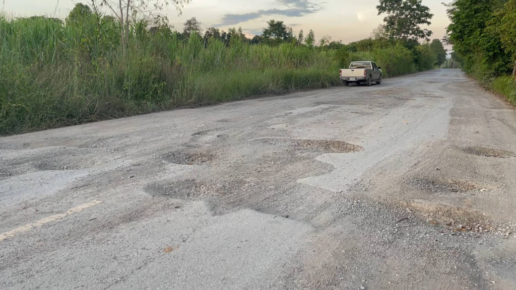 หนองบัวลำภูชาวบ้านร้องทุกข์ถนนพังเป็นหลุมเป็นบ่อวอนหน่วยงานมาซ่อมแซมให้ด้วย