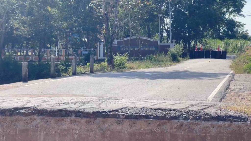และที่น่าเป็นห่วงคือทางแคบ และบริเวณด้านข้างจะสูง ท่อระบายน้ำใต้ถนนกำลังจะทรุดตัวลง เป็นอันตรายแก่เด็ก ถนนก็แคบทำให้รถวิ่งสวนกัน ไปมาได้ลำบาก เด็กนักเรียนและพี่น้องประชาชนผู้สัญจรไปมา ขนส่งพืชผลทางการเกษตร ระหว่างสองตำบลที่ใช้เส้นทางดังกล่าวต้องลำบากมาก จึงฝากไปถึงหน่วยงานที่เกี่ยวข้อง ช่วยลงมาซ่อมแซมให้สามารถสัญจร ไปมาได้เหมือนเดิมด้วย ข่าวคืบหน้าผู้สื่อข่าวจะรายงานให้ทราบต่อไป.