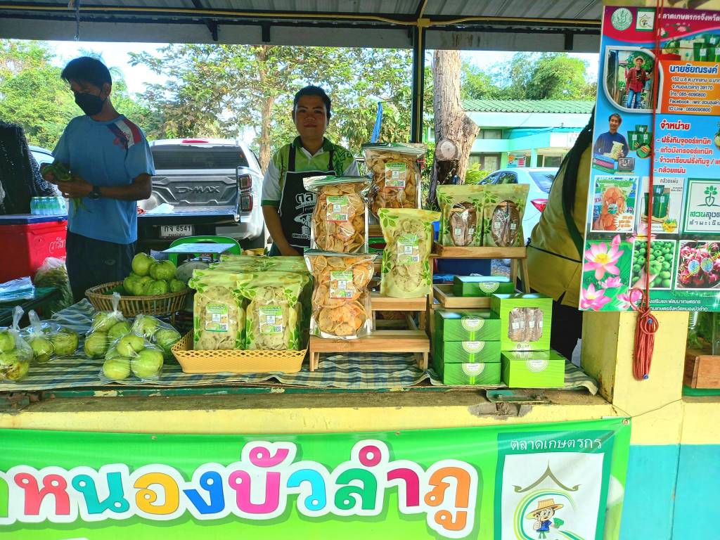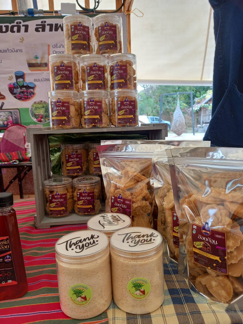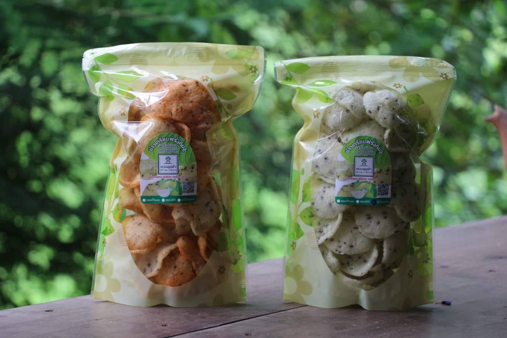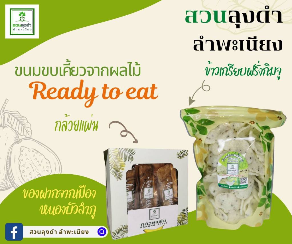 สวนลุงดำ ลำพะเนียง วิสาหกิจชุมชนกลุ่มเกษตรผสมผสานแปรรูปพืชผลทางการเกษตร อาทิ ข้าวเกรียบฝรั่งกิมจู กล้วยอบม้วน