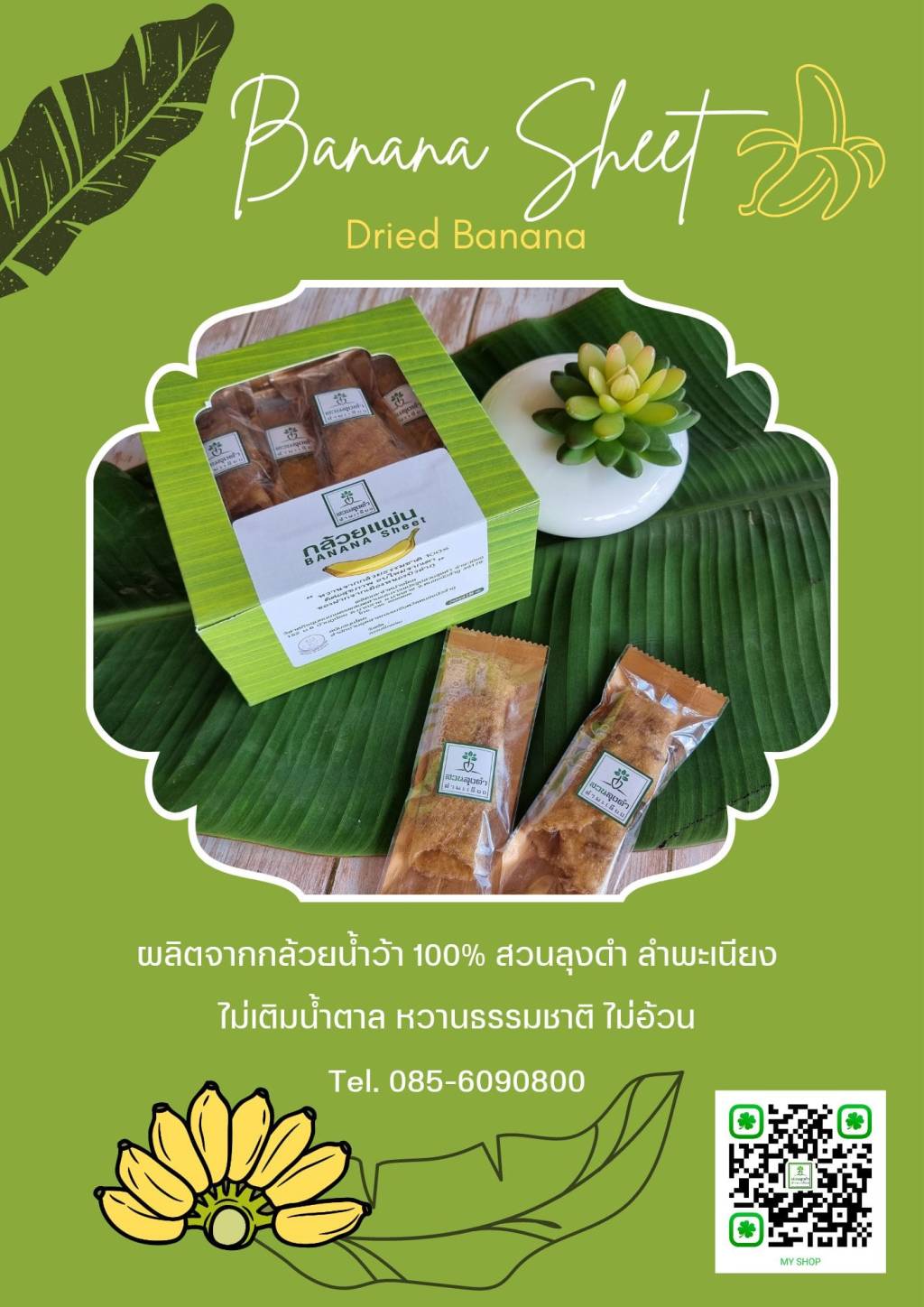 กล้วยอบม้วน,กล้วยแผ่นเราใช้กล้วยน้ำว้าสุก มาทับแบนแล้วอบด้วย ตู้อบลมร้อน จากพลังงานแสงอาทิตย์ ใช้เวลาอบนานถึง 16 ชั่วโมง จึงได้กล้วยอบม้วน และกล้วยอบแผ่นที่ หอม นุ่มหนึบหนับ หวานจากธรรมชาติแท้ 100%