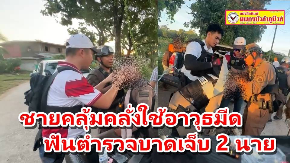หนองบัวลำภูชาย 56 ปีคลุ้มคลั่งใช้อาวุธมีดฟันตำรวจบาดเจ็บ 2 นาย