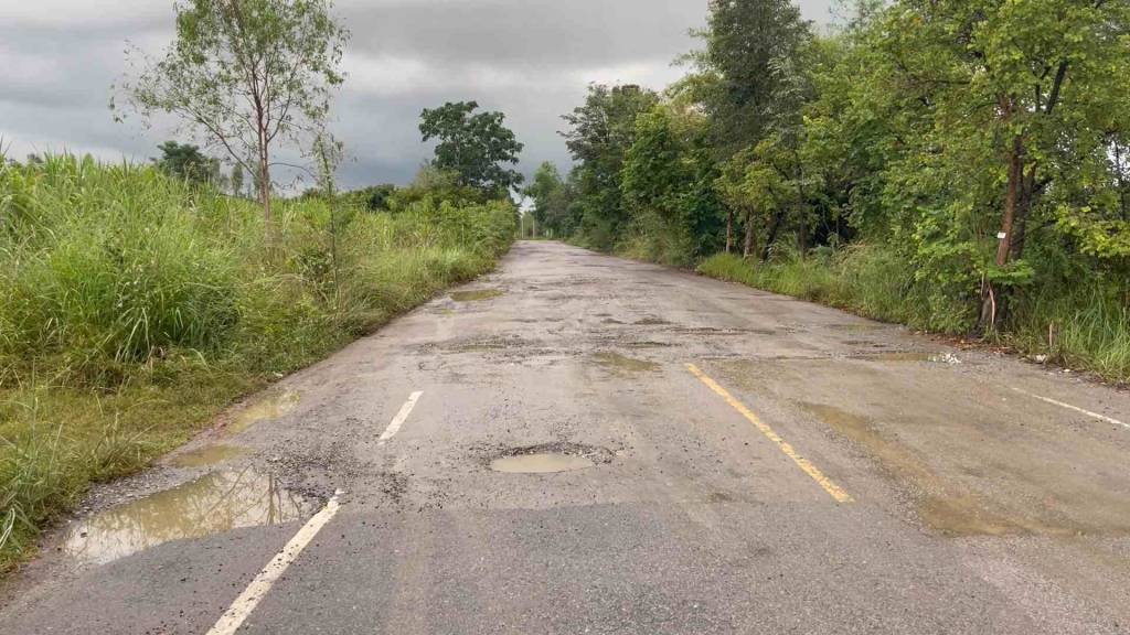 ไปถึงบ้านโนนขมิ้น ตำบลโนนขมิ้น อำเภอเมือง จังหวัดหนองบัวลำภู ถนนพังเป็นหลุมเป็นบ่อชาวบ้านสัญจรไปมาด้วยความยากลำบากมาหลายปี หลังจากนั้นผู้สื่อข่าวได้เดินทางไปตรวจสอบที่บริเวณถนนจุดที่รับแจ้ง ออกจากหมู่บ้านหนองปลาขาวถนนจะดี พอมาถึงช่วงกลางทางถนนจะพัง ระยะทางประมาณ 1 กิโลเมตร และก่อนเข้าหมู่บ้านโนนขมิ้นถนนถึงจะดี