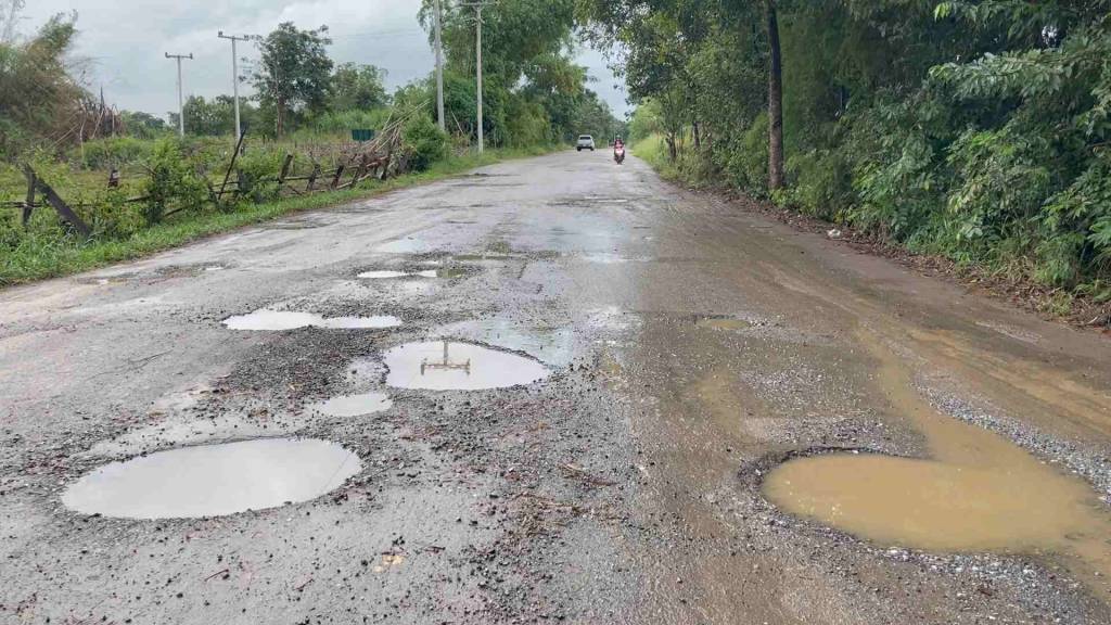 หนองบัวลำภูทุกข์ชาวบ้านถนนพังเป็นหลุมน้ำท่วมขังสัญจรไปมาลำบาก