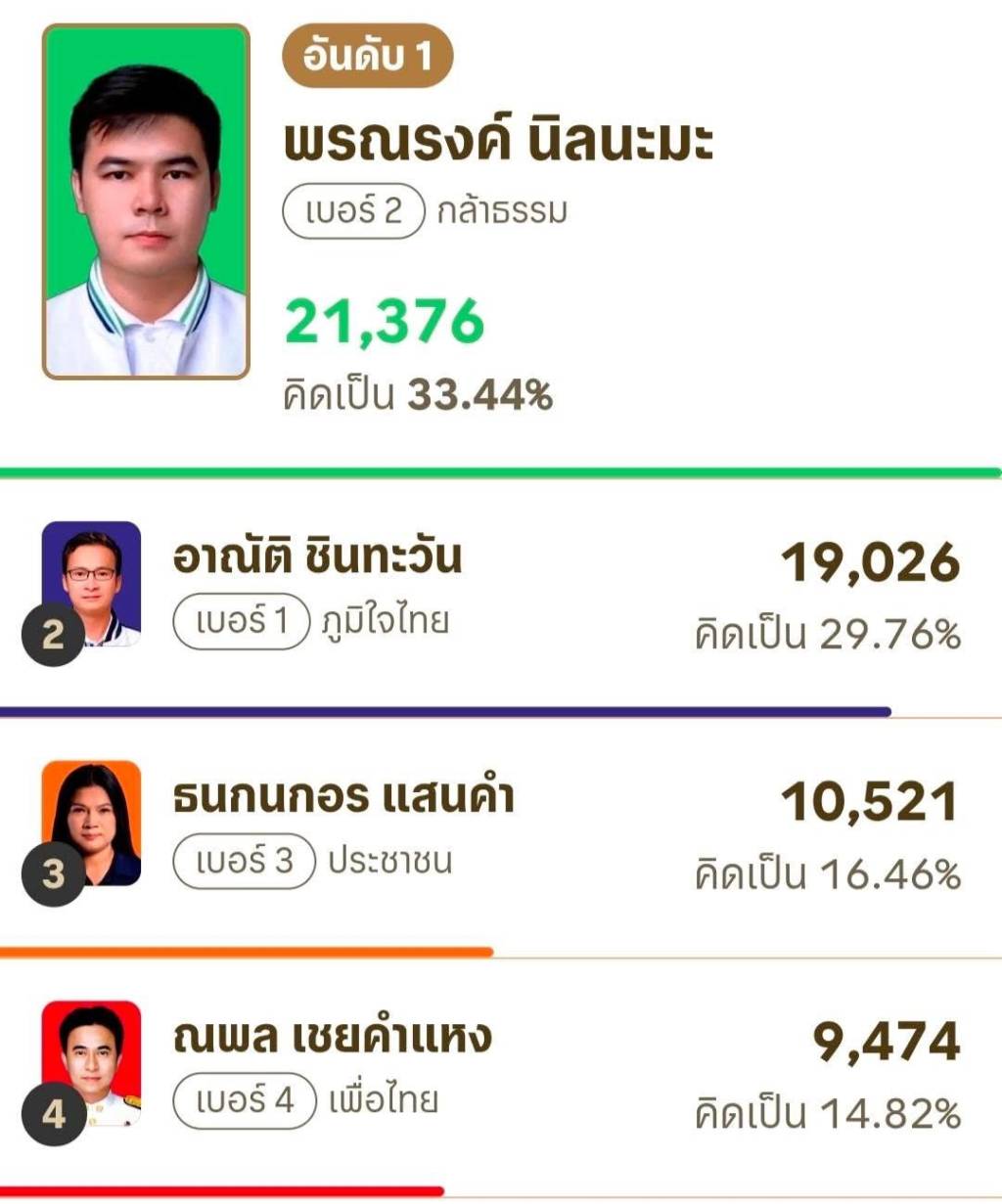 สรุปผลคะแนนการเลือกตั้ง สส.ทั้ง 3 เขต ของจังหวัดหนองบัวลำภู (อย่างไม่เป็นทางการ)