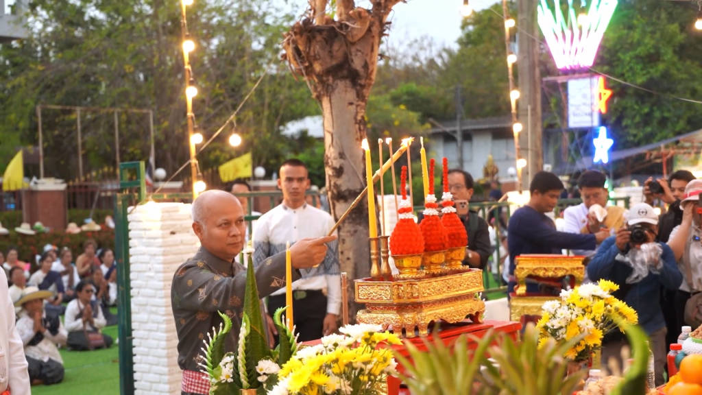 บรรยากาศเริ่มมีความคึกคักตั้งแต่ช่วงบ่าย เวลา 14.30 น. โดยขบวนแห่ศิลปวัฒนธรรมอันวิจิตรตระการตาจากตำบลต่างๆ ได้เริ่มเคลื่อนขบวนเข้าสู่หน้าเวทีกลาง สร้างความตื่นตาตื่นใจให้กับนักท่องเที่ยวและผู้มาร่วมงาน สะท้อนให้เห็นถึงความเข้มแข็งของชุมชนและเอกลักษณ์ทางวัฒนธรรมของชาวโนนสัง กระทั่งเวลา 17.30 น. เข้าสู่ช่วงไฮไลท์สำคัญ คือ พิธีบวงสรวงศาลหลักเมืองอำเภอโนนสัง ซึ่งถือเป็นศูนย์รวมจิตใจของชาวเมือง