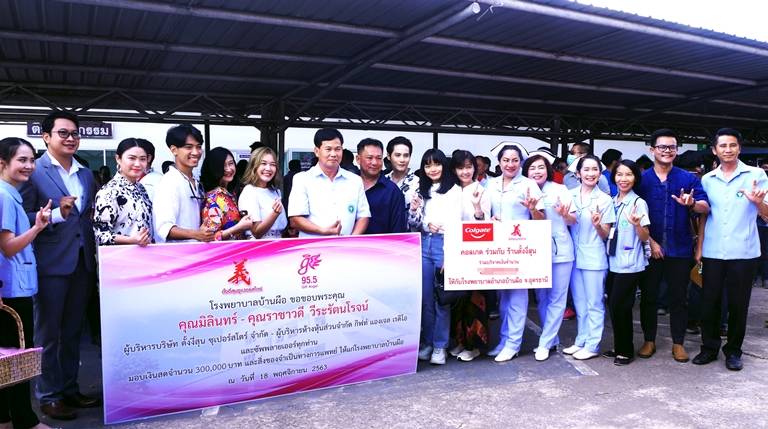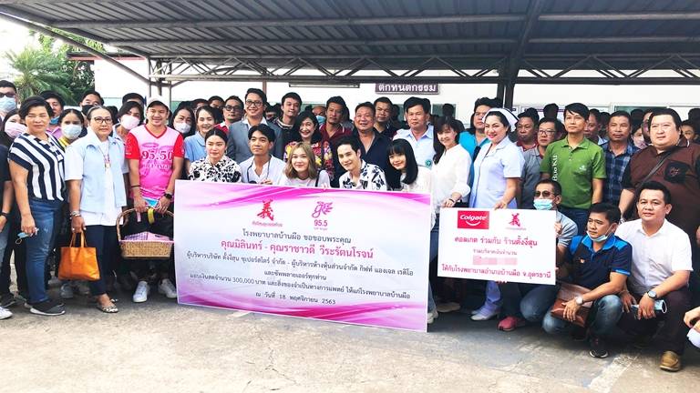 คุณมิลินทร์ วีระรัตนโรจน์ คุณราชาวดี วีระรัตนโรจน์ ผู้บริหารบริษัท ตั้งงี่สุน ซุเปอร์สโตร์ จำกัด ผู้บริหารห้างหุ้นส่วนจำกัด กิฟท์ แองเจล เรดิโอ ชัพพลายเออร์ และพันธมิตรบริษัททางการค้าต่างๆ พร้อมด้วย ศิลปิน ไอช์ ธมลวรรณ,เบส เดอะวอยช์,โอบ เดอะวอยช์,โพกัส กิตติคุณ เพื่อมอบเงินบริจาคเพื่อสมทบทุนซื้ออุปกรณ์ทางการแพทย์ให้กับโรงพยาบาลบ้านผือ เป็นเงินจำนวน 300,000 บาท(สามแสนบาท) และสิ่งของที่จำเป็นต่างๆทางการแพทย์อีกประมาณกว่าหนึ่งแสนบาท