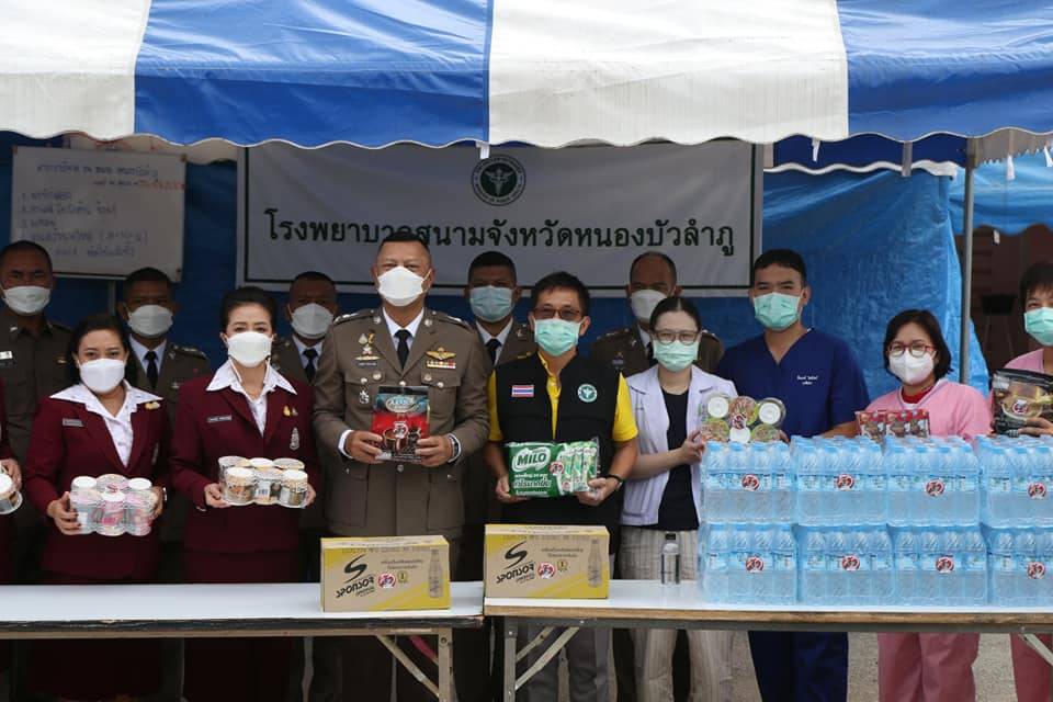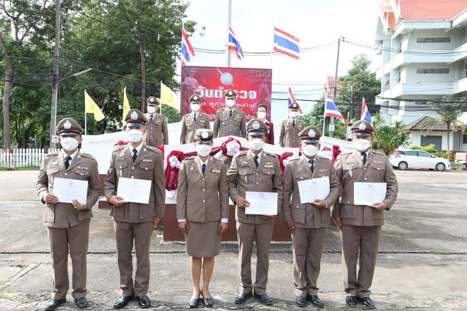 ประกอบพิธีมอบใบประกาศเกียรติคุณ ผู้มีความประพฤติปฏิบัติดีเยี่ยม ตามประมวลจริยธรรมและจรรยาบรรณของตำรวจประจำปีงบประมาณ 2564 จำนวน 9 ราย และมอบทุนการศึกษาของสหกรณ์ออมทรัพย์ตำรวจภูธรจังหวัดหนองบัวลำภู แก่บุตรธิดาของข้าราชการตำรวจในสังกัด จำนวน 27 ราย หลังเสร็จสิ้นพิธีวันตำรวจได้เดินทางไปมอบสิ่งของช่วยเหลือผู้ป่วยติดเชื้อไวรัสโคโรน่า 2019 ณ โรงพยาบาลสนามจังหวัดหนองบัวลำภู (แห่งที่1) และเดินทางไปสักการะหลวงปู่อินทร์ถวาย สันตุสสโก รักษาการเจ้าอาวาสวัดถ้ำกลองเพล ณ วัดถ้ำกลองเพล ต.โนนทัน อ.เมือง จว.หนองบัวลำภู
