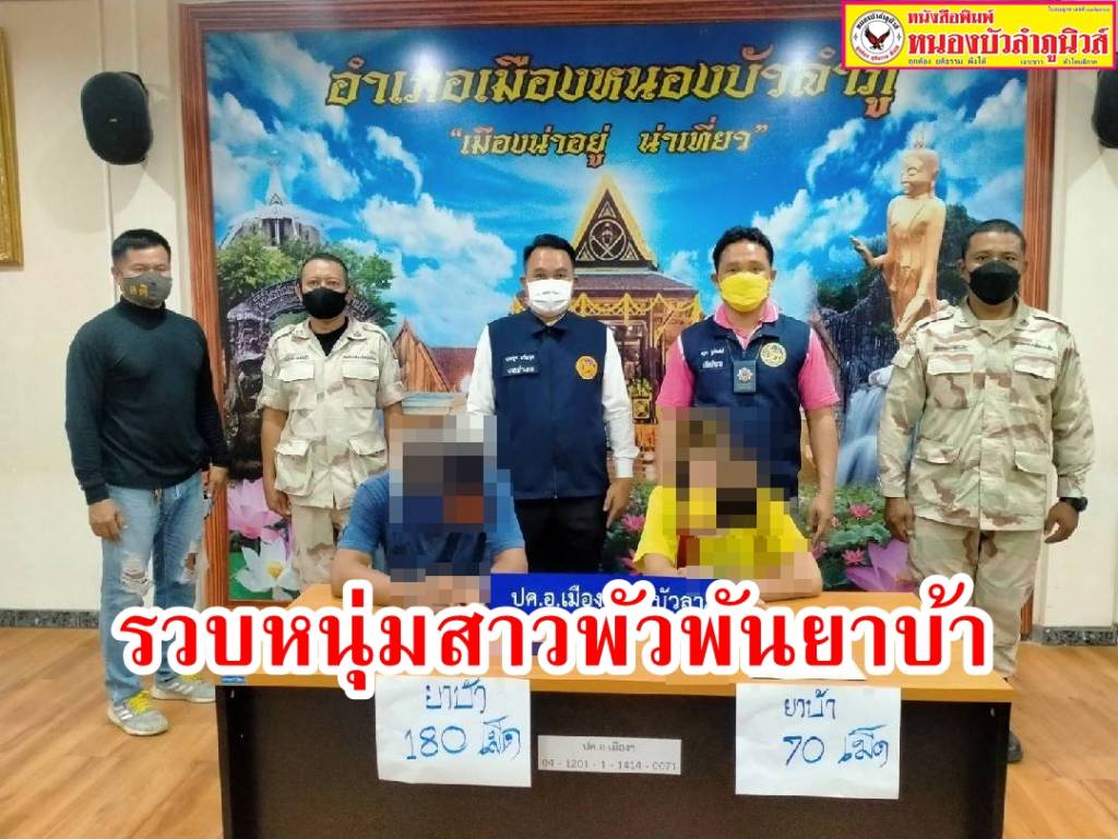 เมื่อวันที่ 15 มี.ค.2565 ผู้สื่อข่าวรายงานว่า นางศิวพร ฉั่วสวัสดิ์ ผู้ว่าราชการจังหวัดหนองบัวลำภู ได้สั่งการให้ทุกพื้นที่ในเขต จ.หนองบัวลำภู ให้ออกหาข่าวและจับกุมผู้ที่ยุ่งเกี่ยวกับยาเสพติด ต่อมา นายประยูร อรัญรุท นายอำเภอเมืองหนองบัวลำภู ,นายอนุชา ภู่เปี่ยมศักดิ์ ปลัดอำเภอเมืองหนองบัวลำภู ม.ญ.ประจบ เนาวราช อส.กฤษณะ ศิริวิชัย อส.อภิชาติ จารย์โพธิ์ ได้ร่วมกันจับกุม นางสาวมณีรัตน์ฯ อายุ 27 ปี ต.หัวนา อ.เมือง จ.หนองบัวลำภู พร้อมของกลางยาบ้า 70 เม็ด สามารถจับกุมได้ที่ ต.หัวนา อ.เมือง จ.หนองบัวลำภู พร้อมแจ้งข้อกล่าวหาว่า เสพยาเสพติดให้โทษประเภท 1 (ยาบ้า) โดยผิดกฎหมาย ,มียาเสพติดให้โทษประเภท 1 (ยาบ้า) ไว้ในครอบครองโดยผิดกฎหมาย และนายเกรียงไกร ฯ ต.ป่าไม้งาม อ.เมือง จ.หนองบัวลำภู พร้อมของกลางยาบ้า 180 เม็ด สามารถจับกุมได้ที่ ต.ป่าไม้งาม อ.เมือง จ.หนองบัวลำภู พร้อมแจ้งข้อกล่าวหาว่า เสพยาเสพติดให้โทษประเภท 1 (ยาบ้า) โดยผิดกฎหมาย ,จำหน่ายยาเสพติดให้โทษประเภท 1 (ยาบ้า) โดยการมีไว้เพื่อจำหน่ายโดยฝ่าฝืนกฎหมาย นำส่งพนักงานสอบสวน สภ.เมืองหนองบัวลำภู ดำเนินคดีตามกฏหมายต่อไป