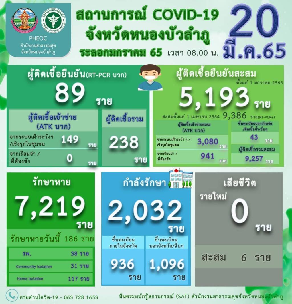 และในวันนี้ในส่วนของ จ.หนองบัวลำภู มีผู้ติดเชื้อโควิด 19 เพิ่ม 89 ราย กำลังรักษา 2,032 ราย และที่ผ่านมามีผู้ติดเชื้อเพิ่มขึ้นเรื่อยๆทุกวัน โดยเจ้าหน้าที่บุคคลากรทางการแพทย์ต้องทำงานอย่างหนัก
