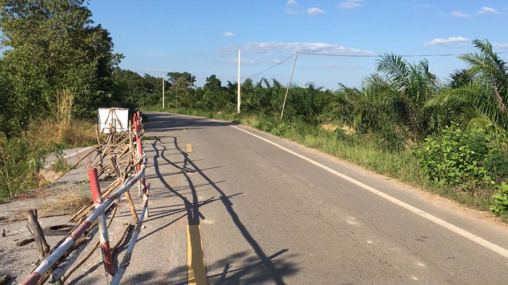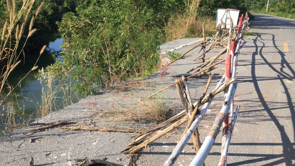 ถนนพังโดนน้ำกัดเซาะหายจมลงไปในน้ำ 1 ช่องทางจราจรกว่า 5 ปียังไม่ได้ซ่อมแซมวอนหน่วยงานช่วยด้วย