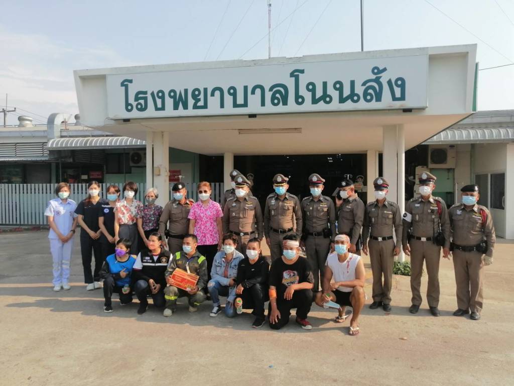 โดยมีการจำลองเหตุการณ์ มีวัยรุ่นได้รับบาดเจ็บ 1 ราย ถูกนำตัวส่งเข้าห้องฉุกเฉินทำการรักษาที่โรงพยาบาลโนนสัง ส่วนวัยรุ่นคู่กรณีตามมาเจอกันที่โรงพยาบาล ฯ ทางโรงพยาบาลแจ้งไปที่ สภ.โนนสัง เจ้าหน้าที่ตำรวจถึงโรงพยาบาลฯ เจ้าหน้าที่ตำรวจทำการเจรจาเพื่อหยุดผู้ก่อเหตุ แต่วัยรุ่นผู้ก่อเหตุไม่สงบ หรือไม่พูดคุย เจ้าหน้าที่ตำรวจจึงใช้อุปกรณ์ไม้ง่ามเข้าระงับเหตุ เมื่อจับกุมผู้ก่อเหตุได้จึงนำส่งพนักงานสอบสวนดำเนินคดีต่อไป