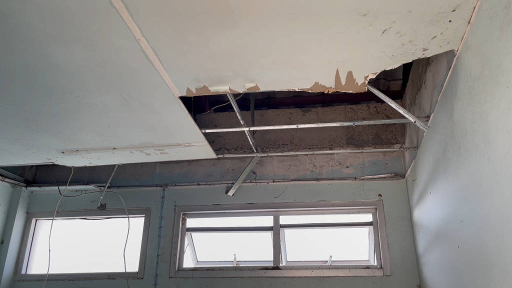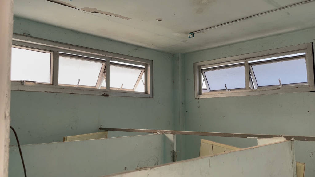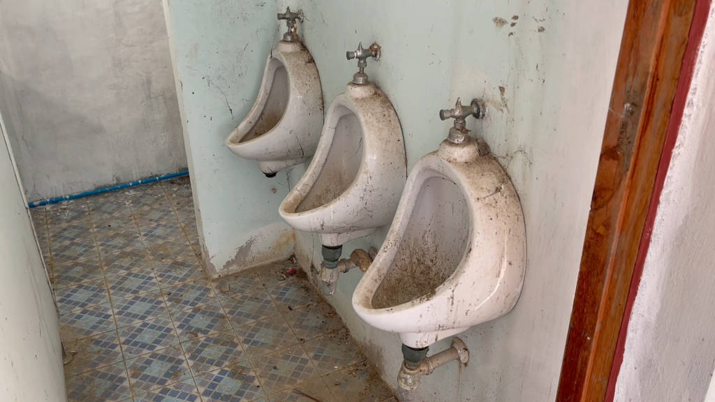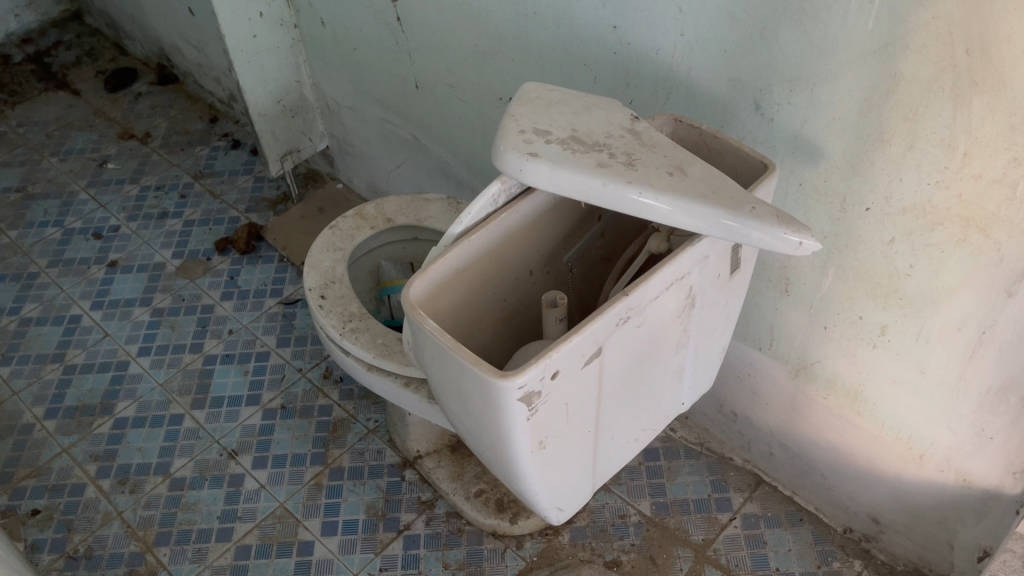 สภาพด้านในอาคารชำรุดเสียหายหลอดไฟฟ้า ถูกถอดออกไป ในห้องน้ำสุขภัณฑ์ต่างๆ อ่างล้างหน้า ฯลฯถูกถอดออกไป เหลือแต่ปูนเป็นรูโหว่ รอบๆอาคารมีร่องรอยเศษแก้ว จากขวดเครื่องดื่มแอลกอฮอล์ แตกกระจาย เกลื่อนไปหมด น่าเสียดาย เพราะตัวอาคารยังใหม่ๆ อยู่ด้านในไม่มีสิ่งของอย่างอื่น หลังคาถูกน้ำหยดใส่จนพังครืนลงมา