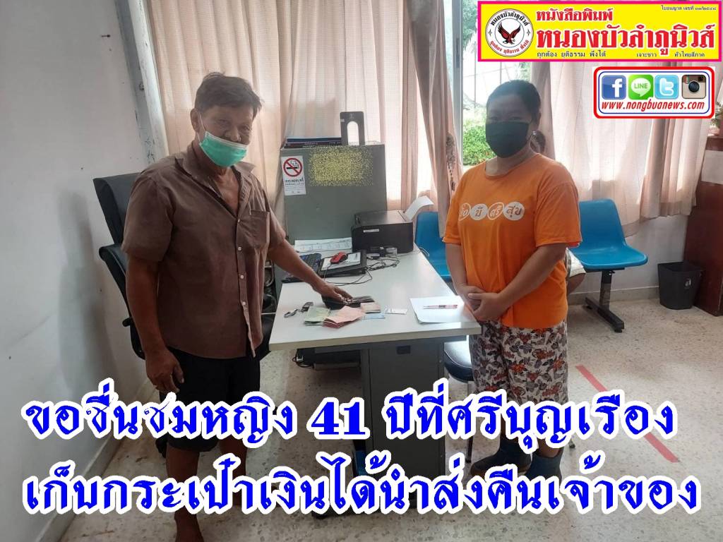 ขอชื่นชมหญิง 41 ปีที่ศรีบุญเรืองเก็บกระเป๋าเงินได้นำส่งคืนเจ้าของ